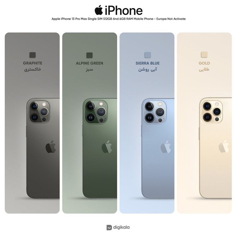 گوشی موبایل اپل مدل iPhone 13 Pro Max تک سیم کارت ظرفیت 512 گیگابایت و رم 6 گیگابایت - اروپا اکتیو
