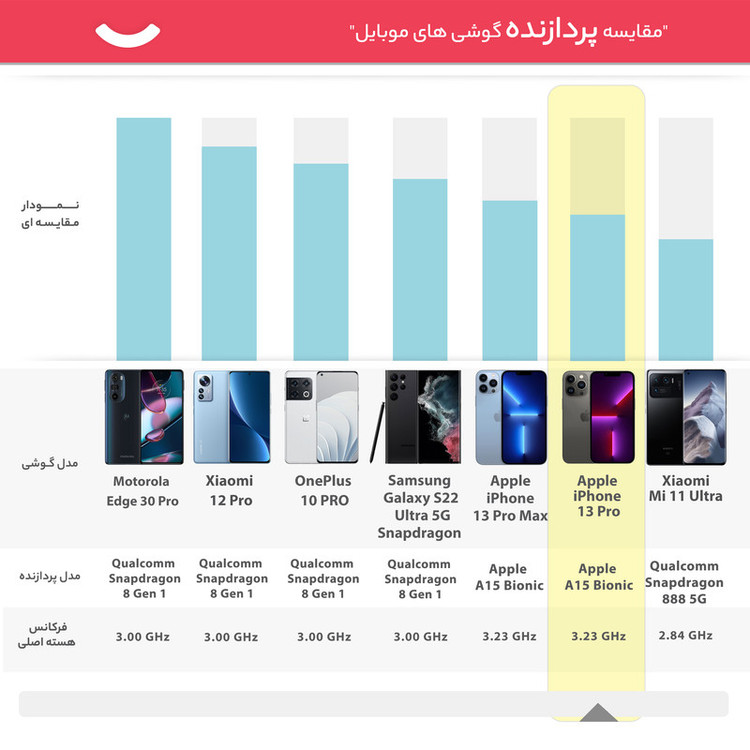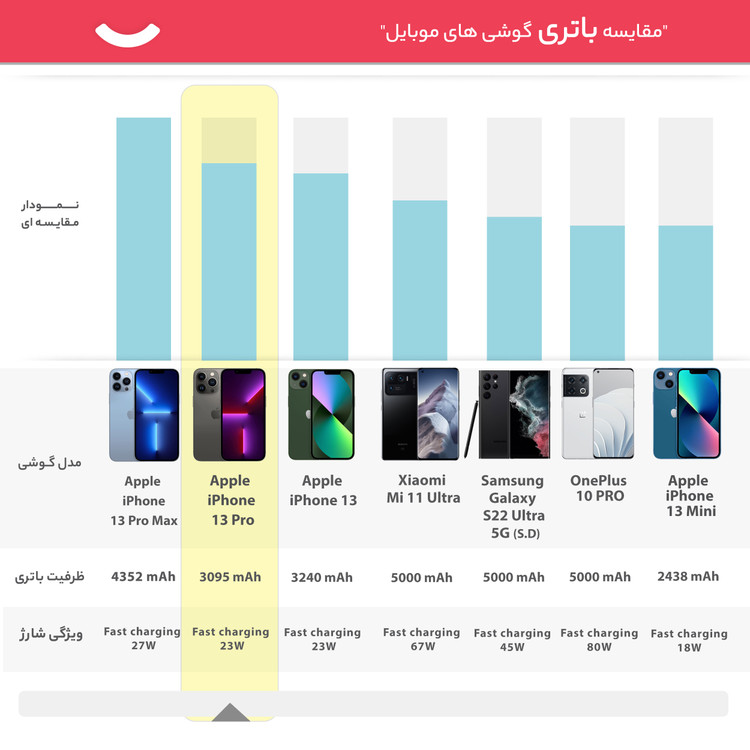 بالاخره بعد از شایعات، شاهد رونمایی جدیدترین گوشیهای هوشمند اپل در قالب خانواده آیفون 13 بودیم. آیفون 13 پرو مکس، آیفون 13 پرو، آیفون 13 و آیفون 13 مینی بهعنوان جدیدترین گوشیهای هوشمند این شرکت معرفی شدند. از نظر طراحی تفاوت چندانی با نسل قبلی پرچمداران این شرکت شاهد نبودیم. تنها در نمای رو به رویی این بار اپل از ناچ با عرض کمتری به نسبت نسل قبلی بهره برده است. آیفون 13 پرو به صفحهنمایشی 6.1 اینچی با رزولوشن 1284×2778 پیکسل مجهز شده است. برای اولین بار در تاریخ گوشیهای هوشمند اپل، صفحهنمایش در نظر گرفته شده برای آیفون 13 پرو توانایی ارائه نرخ بروزرسانی 120 هرتز را دارد که بدون شک می تواند صفحهنمایشی روان تر و به مراتب باکیفیتتری به نسبت نسل های قبلی ارائه میکند. این صفحهنمایش توانایی ارائه حداکثر روشنایی 1200 نیت (شمع در متر مربع) را دارد که همین امر سبب میشود تا در شرایط نوری متنوع و حتی زیر تابش مستقیم نور خورشید هم، وضوح تصویر بسیار خوبی دارد. در قسمت پشتی سه سنسور دوربین به همراه یک سنسور LIDAR با همان طراحی آیفون 12 پرو مکس قرار گرفتهاند. یک سنسور دوربین اصلی با رزولوشن 12 مگاپیکسلی با گشودگی دریچه دیافراگم f/1.5، سنسور دوربین 12 مگاپیکسلی از نوع فوق عریض (Ultra Wide) و سنسور 12 مگاپیکسلی از نوع تله فوتو، دوربین سهگانه آیفون 13 پرو مکس را تشکیل می دهند. پردازنده A15 بایونیک هم اینبار قدرتمند تر از همیشه متشکل از شش هسته (2 هسته قدرتمندتر و 4 هسته با صرفه انرژی کمتر) این پرچمدار قدرتمند را همراهی میکند. گوشیهای نات اکتیو با قرار گرفتن سیمکارتهای داخلی اکتیو میشوند و برخلاف مدل اکتیو پلمپ کالا باز نشده است. گوشیهای اکتیو برند اپل هم به این شکل هستند که به دلیل محدودیتهای برخی از محصولات اپل برای کشور ایران، در کشورهای همسایه بهصورت رسمی با یک بار قرار گرفتن سیمکارت، اکتیو شده و پلمپ میشوند و باید بدانید که این پروسه هیچ مشکلی در راستای گارانتی کالا بههمراه ندارد. پارتنامبرهای اروپا و ژاپن و امارات تک سیمکارت هستند و پارتنامبرهای مربوط به امارات هم از فیس تایم پشتیبانی نمیکنند. پارتنامبر JA (ژاپن) هم حتی در حالت سایلنت صدای شاتر عکس قطع نمیشود.