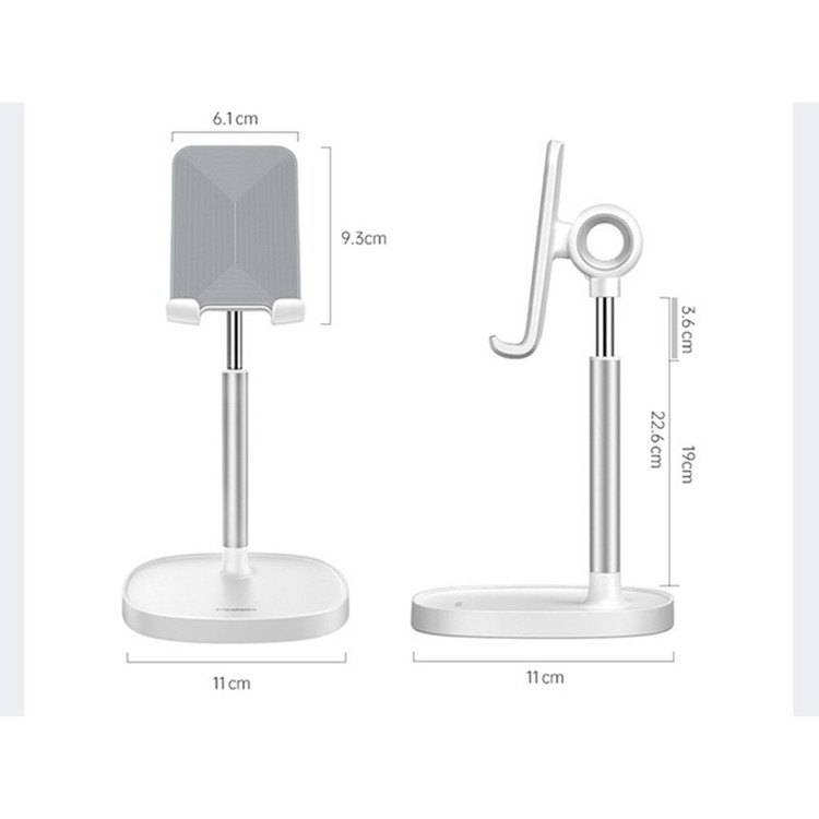 طراحی خاص و ویژه برای نگهدارنده گوشی و تبلت روی میز جهت مطالعه، تماشای تلویزیون، فیلم، سریال و غیره، مجهز به سری با قابلیت چرخش 180 درجه بصورت عمودی و 360 درجه بصورت افقی جهت تنظیم بهترین زاویه دید دلخواه، دارای پایه قابل تنظیم با افزایش ارتفاع تا 36 میلیمتر: حداقل ارتفاع 190 میلیمتر، حداکثر ارتفاع 226 میلیمتر، ساخته شده از آلیاژ آلومینیوم+سیلیکون، مقاوم در برابر ضربه، فشار و اکسید شدن، بهرهگیری از پدهای ضربه گیر سیلیکونی جهت جلوگیری از ایجاد خط و خش بر روی گوشی، دارای شیار در قسمت پشت و پایین هولدر جهت اتصال کابل شارژ به گوشی برای دست و پا گیر نبودن کابل، استفاده از قسمت فلزی در انتهای نگهدارنده جهت نگهداری وسایل کوچک مانند فلش، هدفون، کابل و غیره، دارای پایههای سیلیکونی جهت قرارگیری محکم و بدون لغزش بر روی سطوح صاف، سازگار با اکثر گوشیها و تبلتها، سبک با وزن 238 گرم است.