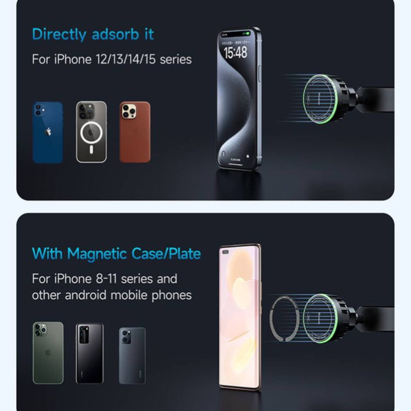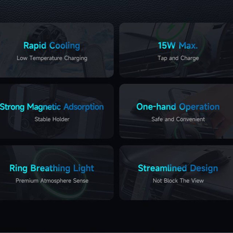 3 کاره : هم هولدر گوشی، شارژر وایرلس و فن خنک کننده گیمینگ … قابل استفاده برای گوشی های اندروید و آیفون … دارای کنترل دمایی اتوماتیک به طوریکه اگر حدود 3 دقیقه دمای پشت گوشی روی 17 درجه سانتی گراد باقی بماند به صورت خودکار فن خنک کننده را خاموش میکند و اگر دمای سطح پشتی گوشی 3 دقیقه به 22 درجه سانتی گراد برسد اتوماتیک فن خن کننده روشن می شود … قابلیت نصب روی شیشه خودرو و هم روی داشبورد خودرو … پشتبانی از قابلیت مگ سیف آهنربایی گوشی های اپل سری 12 به بالا … دارای فن خنک کننده گوشی موبایل … فن خنک کننده صدای بسیار کمی دارد و در مکالمه هیچ تاثیر نمی گذارد … قابلیت شارژ گوشی های دارای قاب محافظ تا حداکثر ضخامت قاب 6 میلیمتر بدون نیاز به درآوردن قاب گوشی … دارای 8 آهنربای رینگی بسیار قوی 12N قابلیت تحمل وزن 1200 گرم … دارای ساکشن وکیوم سیلیکونی بسیار قوی و قابل شستشو … دارای قابلیت گردش 360 درجه … دارای 9 پروتکل حفاظتی شامل حفاظت در برابر افزایش و کاهش ولتاژ و آمپر، حافظت در برابر اتصال کوتاه و افزایش ناگهانی دما، محافظت در برابر چسبیدن جسم خارجی غیر از گوشی، حفاظت الکترو مغناطیسی و… … سازگاری با سیستم عامل ios و اندروید … دارای نورپردازی RGB بسیار شگفت انگیز و زیبا … قابلیت استفاده تنها با یک دست از هولدر در هنگام رانندگی … پشتيباني از فناوري وايرلس QI … سازگاري كامل با تكنولوژي Magsafe گوشي هاي اپل … دارای یک کابل همراه تایپ سی به تایپ سی … سازگاري كامل با كليه برندهاي گوشي موبايل با سیستم عامل ios و اندروید … دارای تکنولوژی (FOD:Foreign Object Detection) به هنگام چسبيدن جسم خارجي غير از گوشي موبايل به صفحه شارژ وايرلس … عدم لغزش و تکان خوردن گوشي به هنگام استفاده از هولدر … دسترسی بسیار راحت و آسان به درگاه های خروجی موبایل … دارای پورت شارژ ورودی تایپ سی 30 واتی … استحکام بسیار بالا … طراحی بسیار جذاب ، شیک و لاکچری …