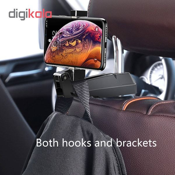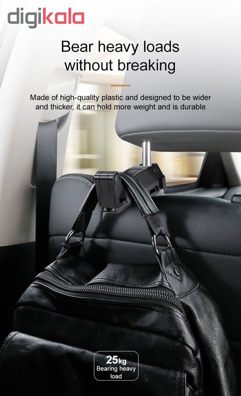 قابل نصب روی صندلی عقب خودرو دارای 2 نگهدارنده برای گوشی و کیف قابلیت نگهداری کیف تا وزن 25 کیلوگرم