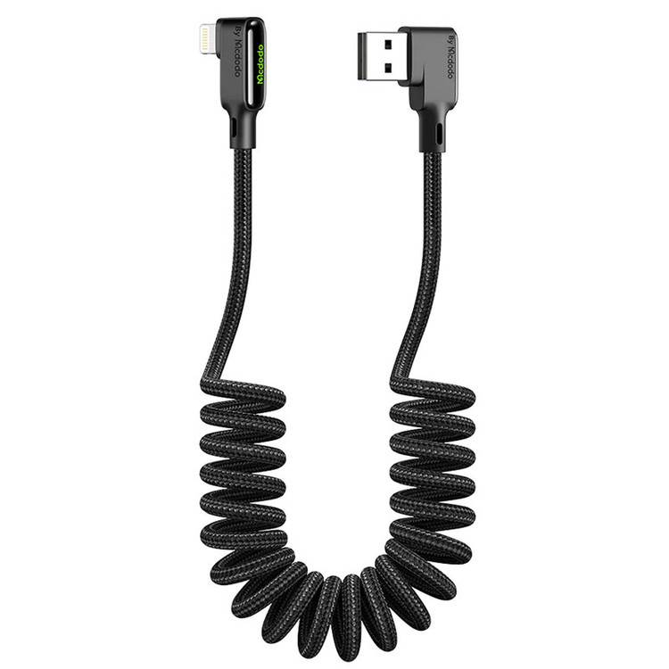 کابل USB به لایتنینگ مک دودو مدل CA-7300 طول 1.8 متر دارای زاویه 90 درجه در سوکت لایتنینگ و سوکت USB است که علاوه بر افزایش طول عمر کابل از دست و پاگیر بودن کابل در زمان شارژ جلوگیری میکند.این کابل فنری بسیار مناسب بازی و فیلم در حالت شارژ و استفاده در خودرو میباشد.کابل لایتنینگ مک دودو دارای کابل کنفی مقاوم و شکیل بافته شده از الیاف TPE میباشد.قابلیت انتقال دیتا و شارژ سریع با انتقال 3 آمپر جریان از خصوصیات این کابل است.چراغ LED تعبیه شده بر روی کابل باعث سهولت پیدا کردن کابل در محیط تاریک شده و جلوه خاصی به کابل می دهد.