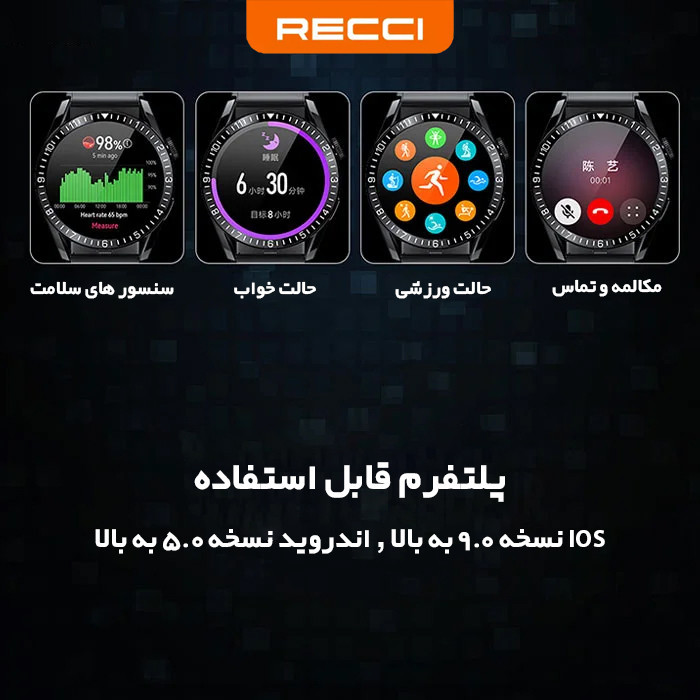 قابلیتهای ساعت هوشمند : صفحه نمایش رنگی , صفحه نمایش لمسی , کنترل موسیقی (Music Player) , کنترل سطح اکسیژن خون , قابلیت مکالمه مستقیم , قابلیت مکالمه از طریق بلوتوث , پشتیبانی از زبان فارسی در منو و سیستمعامل