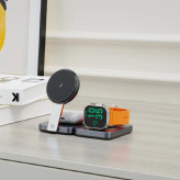 با پایه شارژ چند دستگاهی Powerology Qi2–15W MagSafe iPH15 به رنگ مشکی، تجربه شارژ خود را ارتقا دهید. طراحی هوشمند و فناوری مدرن آن، برق رسانی کارآمد و در عین حال شیک دستگاه ها را فراهم می کند. این دستگاه با سیستم خنک کننده فعال ساخته شده است که دستگاه ها را در حین شارژ خنک و ایمن نگه می دارد، عملکرد و طول عمر گجت را بهبود می بخشد. پایه پاورولوژی شارژ قدرتمند 15 واتی را با قابلیت مدیریت هر نوع شارژی با سهولت بسیار ارائه می دهد. طراحی آن قابل حمل است. بنابراین، برای استفاده در خانه، اداره و یا در حال حرکت عالی است. دارای مشخصات ورودی 9V/3A، QC 3.0 و سازگار با PD است که از شارژ سریع و مطمئن پشتیبانی می کند. توان خروجی تلفن همراه از 15 وات تا 5 وات بسته به دستگاه متفاوت است و سایر خروجی ها فقط به ساعت 2.5 وات و 5 وات هدفون اختصاص داده شده است.