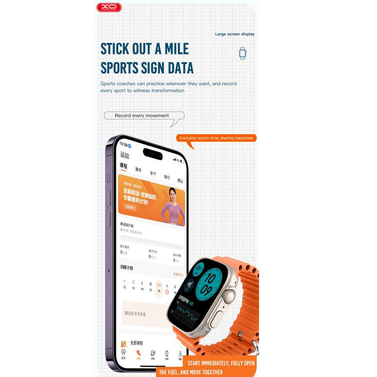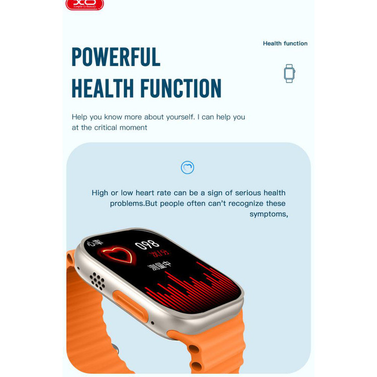ساعت هوشمند XO M8 Ultra با صفحه نمایش به اندازه 1.91 اینچ و استاندارد مقاومت IP67 انتخاب خوب و به صرفه ای برای استفاده روزمره می باشد. داشتن باتری با ظرفیت 240 میلی آمپر ساعتی از دیگر ویژگی های این ساعت می باشد. ساعت XO M8 Ultra از آلیاژ روی و شیشه گرما دیده در ساختار بدنه و سیلیکون در ساختار بند بهره می برد. دارای صفحه نمایشی به اندازه 1.91 اینچ و رزولوشن 240x296 پیکسل می باشد. ساعت ایکس او دارای واچ فیس های متنوع می باشد که با توجه به سلیقه خود واچ فیس مورد نظر را انتخاب کنید. روی بدنه ساعت ایکس او یک دکمه چرخشی (مجیک باتن) قرار دارد. از این کلید برای روشن شدن صفحه و برگشتن به صفحه قبل در منو و بزرگ و کوچک کردن منو کارای دارد. بعلاوه یک دکمه پایین تر از این مجیک باتن وجود داشته و یک دکمه ی دیگر در سمت دیگر ساعت وجود داشته که برای رفتن به حالت های ورزشی تعبیه شده است. ساعت هوشمند XO M8 Ultra دارای قابلیت های پایش سلامتی از قبیل پایش ضربان قلب، پایش خواب، سنجش اکسیژن خون و سنجش دمای بدن است. شما می توانید از این قابلیت ها برای پایش سلامتی خود استفاده کنید. از دیگر قابلیت های ویژه این ساعت، دسترسی سریع (نوار میانبر) بوده که در صفحه اصلی با بالا و پایین کشیدن انگشتتان می توانید به برخی امکانات ساعت دسترسی سریع داشته باشید. ساعت XO M8 Ultra می تواند اعلانات پیام رسان ها مثل واتساپ و اس ام اس را به شما نشان دهد. بعلاوه شما با این ساعت می توانید به دستیار صوتی دسترسی داشته باشید.