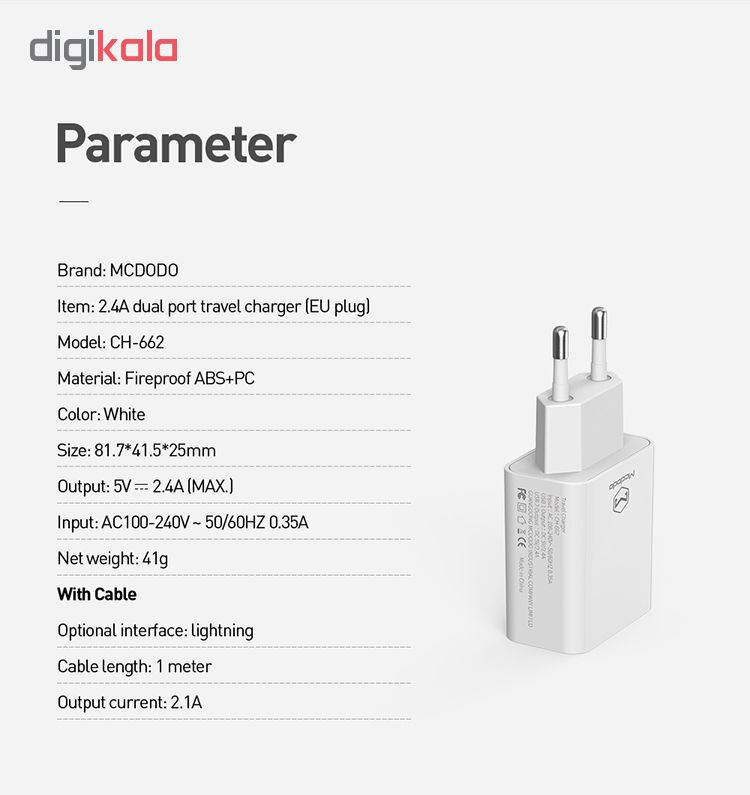 شدت جریان خروجی: 2.4 آمپر مخصوص تبلت و موبایل